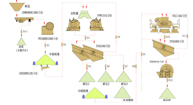 當(dang)地(di)(di)場地(di)(di)規劃的工廠之(zhi)一(yi),多次(ci)受當(dang)地(di)(di)政府組(zu)團參觀(guan)。進入(ru)砂(sha)石行業。 購買本司ZSW600*130給(gei)料機(ji)(ji)(ji)、GZD200*120給(gei)料機(ji)(ji)(ji)、PE1000*1200顎破、PFW1315反(fan)擊破2臺(tai)(tai)、3YA2160振(zhen)動(dong)(dong)篩(shai)2臺(tai)(tai) 、VSI1140離心沖擊破、2YA2460振(zhen)動(dong)(dong)篩(shai)、 XSD3016輪式洗(xi)砂(sha)機(ji)(ji)(ji)等。